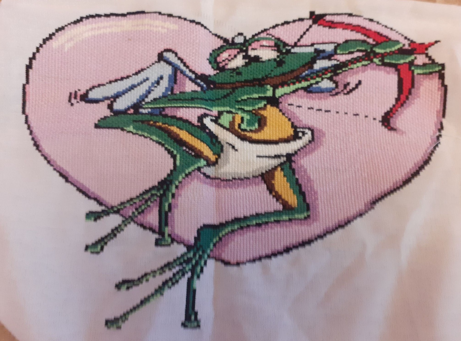 Žabák, výšivka bez rámečku, jednorázový produkt.
